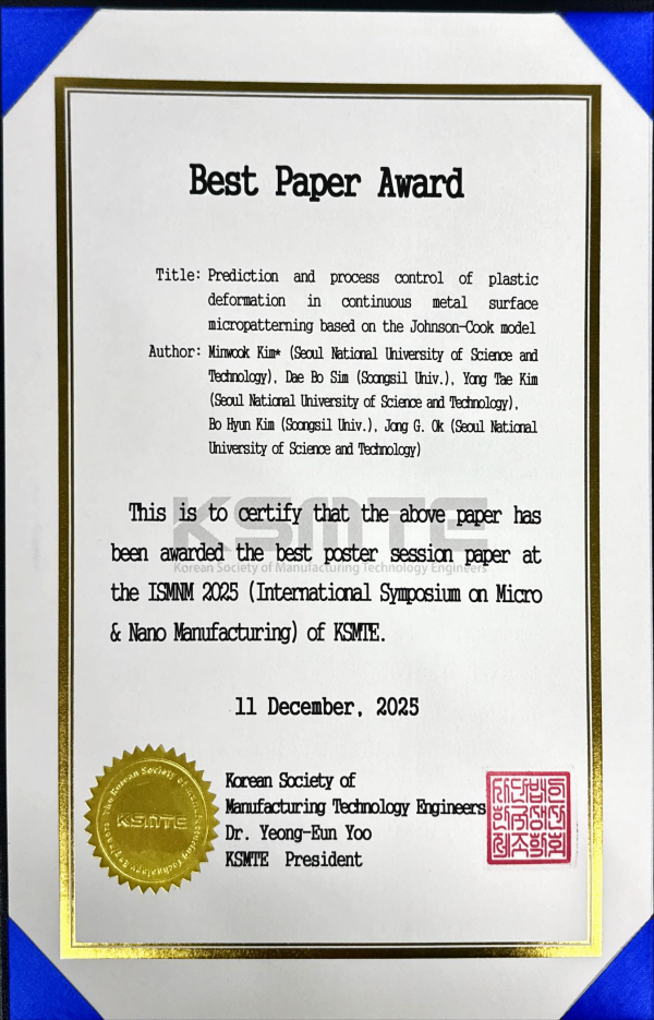 Minwook Kim et al. were awarded the Best Award in 2025 ISMNM 페이지 정보 작성자 최고관리자 작성일 2025-12-18 00:12 본문 List Next Kwangjun Kim et al. were awarded the Best Award in 2025 KMAES 25.12.18